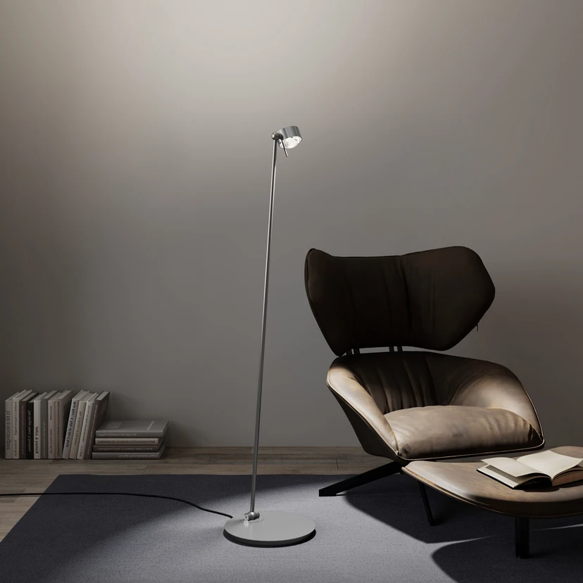Flexibel ausrichtbare LED-Stehleuchte Puk! 80 Floor aus der Avantgarde-Serie mit integriertem Touchdimmer