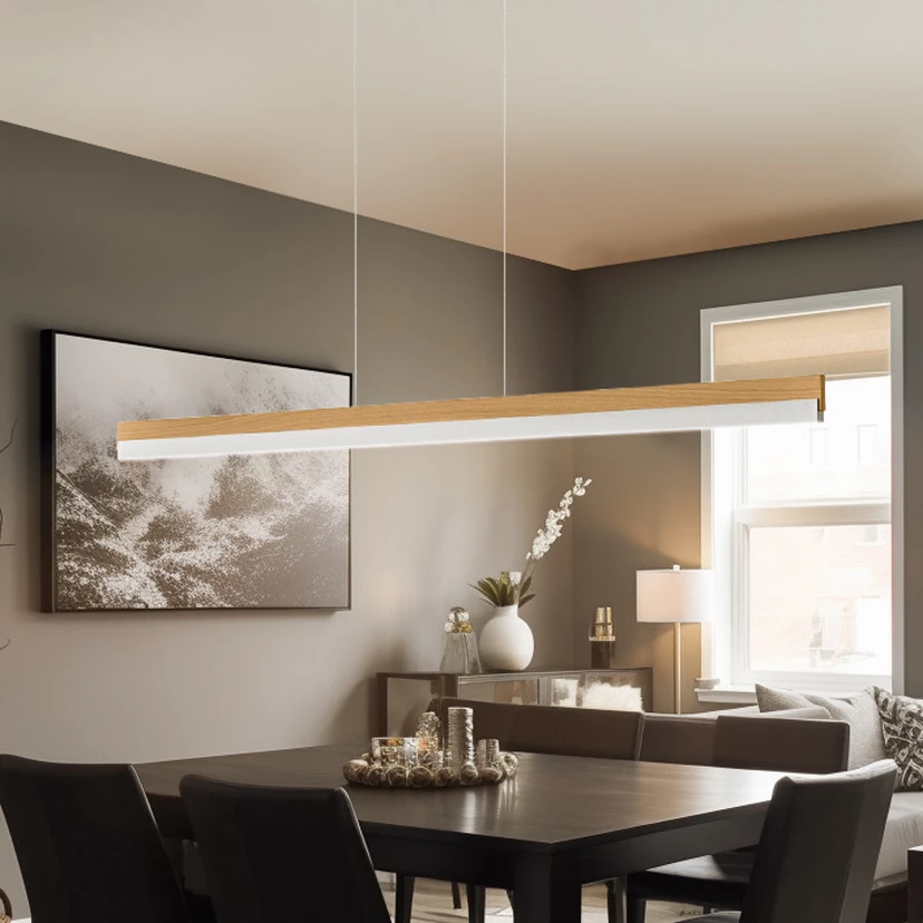 Keijo - LED-Hängeleuchte in einer attraktiven Kombination aus Eiche und nickelfarbenem Aluminium