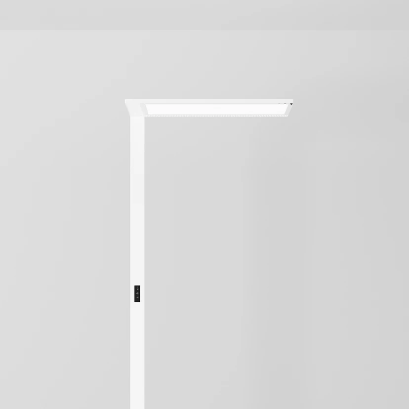 Für die Einzeltischbeleuchtung im Büro ist die LED-Stehleuchte Lightpad gedacht. Sie strahlt sowohl direkt als auch indirekt Licht ab, wobei der Anteil des indirekt abstrahlenden Lichts 70 % beträgt. Sie ist aus Aluminium gefertigt und passt mit der weißen Lackierung zu jedem Einrichtungsstil. Es ist ein zertifiziertes MINERGIE®-Modul integriert, so dass die Energiekosten gering ausfallen. Mit einem UGR<19 ist sie die ideale Wahl für eine effiziente Arbeitsplatzbeleuchtung. Mit Bewegungsmelder und Tageslichtsensor SensoDim® bestückt.