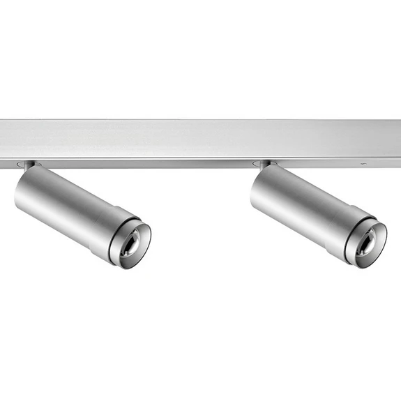 Der moderne LED-Anbaustrahler Vertico ist aus Aluminium gefertigt und besitzt zwei dreh- und schwenkbare Leuchtenköpfe in Zylinderform, die unterhalb einer langen, rechteckigen Deckenschiene angebracht sind. Die Spots sind mit einer hochwertigen Linsentechnik ausgestattet, die mittels Fokussierring eine Justierung des Abstrahlwinkels von 20° bis 60° erlaubt. Abgerundet durch die hervorragende Lichtqualität und Dimmbarkeit bieten sich unzählige Einsatzmöglichkeiten an, ob zur gezielten Warenpräsentation für Verkaufsflächen oder zur Allgemein- und Bereichsbeleuchtung in Empfangs-, Aufenthalts- und Durchgangsräumen.