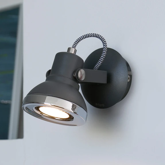 Dunkelgrau lackierter LED-Wandstrahler Ring im Retro-Stil