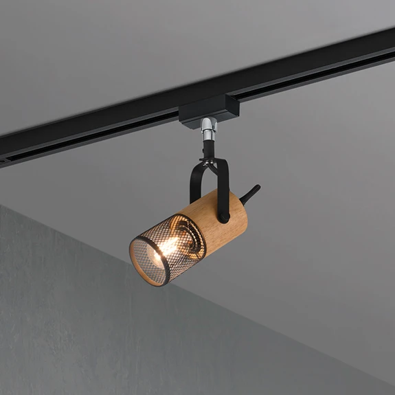 Schienenstrahler Tosh für DUOline, schwarz matt, Holzdetail
