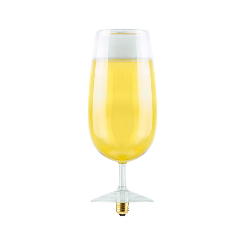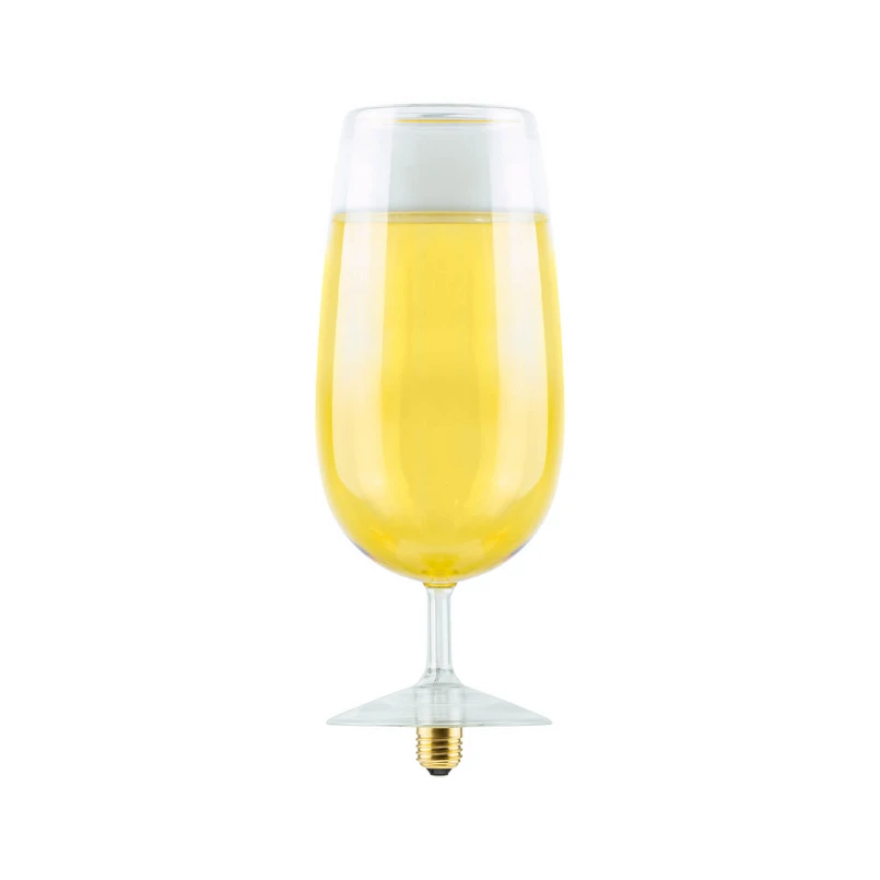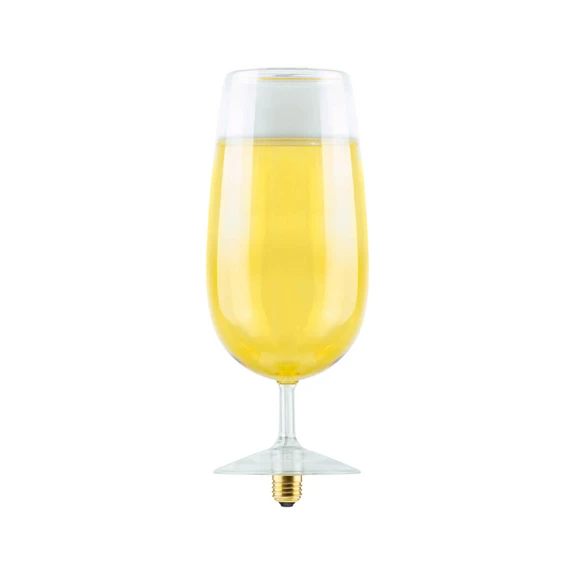 Dieses E27-LED-Leuchtmittel aus der Floating Serie ist mit einem goldfarbenen Glaskolben versehen, der einem gefüllten Bierglas nachempfunden ist. Hinzu kommt ein goldfarbener E27-Sockel aus Metall.