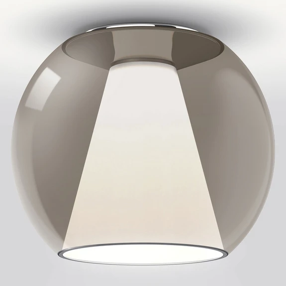 Mit der LED-Deckenleuchte Draft wird aus der archetypischen Kugelleuchte ein Objekt von zeitgenössischer Prägnanz und perfekt ausbalancierter Lichtwirkung. Die Kugel aus transparentem, mundgeblasenem Glas und der lichtstreuende, opale Innenreflektor treten in einen spannenden Kontrast. Die LED-Lichtquelle sitzt tief im Inneren des konischen Innenreflektors und sorgt rundum für weich gestreutes Raumlicht sowie ein gerichtetes Direktlicht nach unten. Eine Diffusorscheibe am unteren Abschluss gewährleistet einen besonders weichen Lichtaustritt und gleichmäßig beleuchtete Flächen.