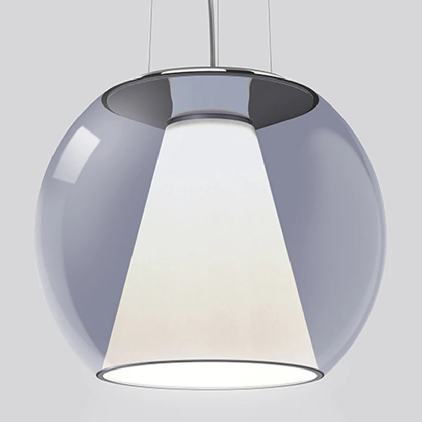 LED-Pendelleuchte Draft mit mundgeblasenem Kugelschirm und opalem Innenreflektor