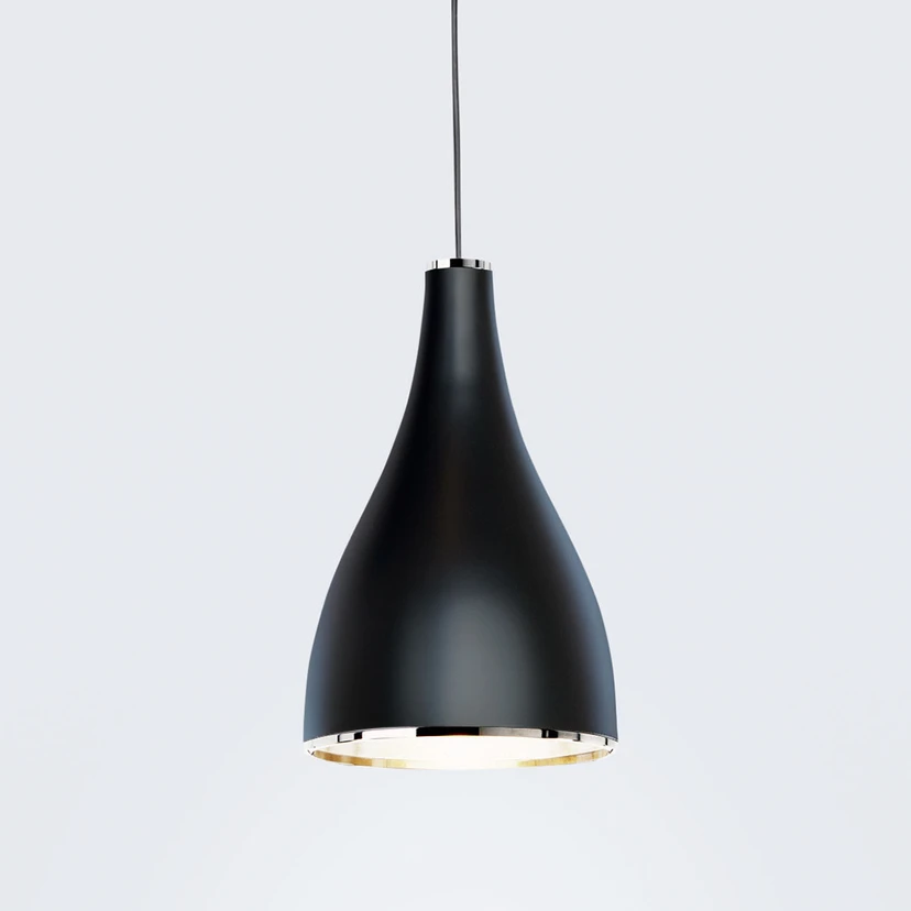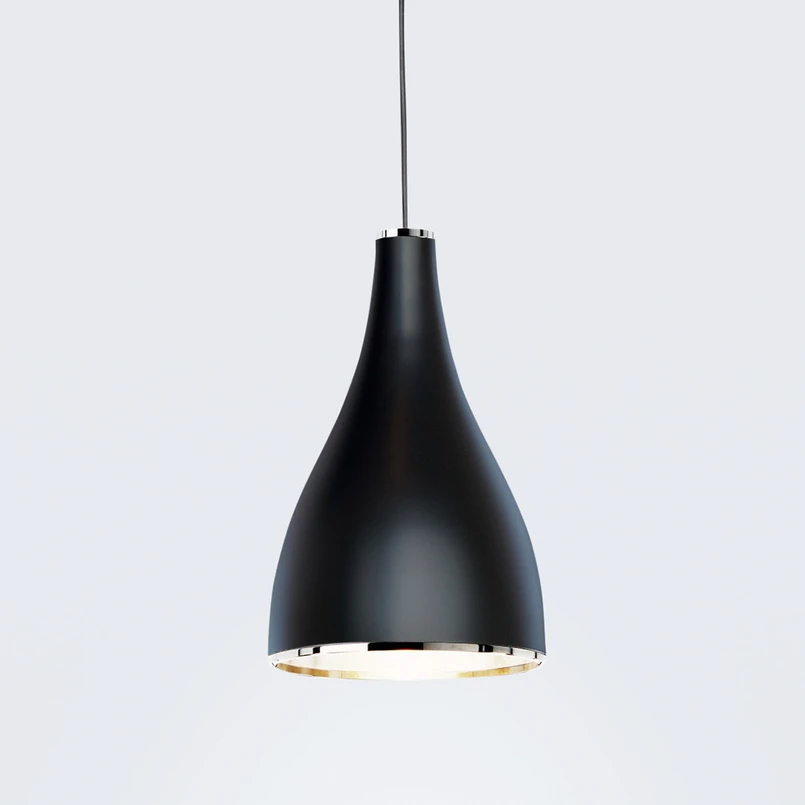 Höhenverstellbare Designer-Pendelleuchte One Eighty aus schwarzem Aluminium Ausgezeichnet mit dem Red Dot Design Award 2010 und nominiert für den Designpreis der Bundesrepublik Deutschland 2011 - die Pendelleuchte One Eighty ist ein preisgekröntes Meisterstück. Es müssen nicht immer Attribute wie Prunk und auffallende Farben sein, um aus der Masse hervorzustechen, wie One Eighty eindrucksvoll beweist. Dieser Pendelleuchte genügt schlichte Eleganz in Farbe und Form, um sich auf höchstem Niveau zu bewegen. Ein schmales Schnurpendel verbindet den Baldachin mit dem Leuchtenschirm. Beide wurden in perfekter Symmetrie zueinander gestaltet. Sanfte Linien beschreiben das Äußere des Schirms und scheinen das Licht an seinen Bestimmungsort zu leiten. Die matt-schwarze Oberfläche des hochwertigen Aluminiums wirkt leicht, unaufdringlich und ist gezeichnet von schlichter Eleganz, die in nahezu jeder Umgebung willkommen ist. Um auf eine optische Unterbrechung dieser ansonsten sehr homogenen Farbgebung nicht verzichten zu müssen, wurden Baldachin und Schirm an ihren beiden Enden mit vernickelten Zierringen aus Stahl versehen. So entstehen kleine, aber durchaus wahrnehmbare Lichtreflexionen, die die Eleganz von One Eighty um ein kleines Highlight ergänzen. Die Frage, für welche Zwecke sich die Pendelleuchte eignet, ist schnell beantwortet. Für nahezu alle! One Eighty wurde bewusst so gestaltet, dass Form, Design und Farbe ihr keine Grenzen setzen. Einzeln über dem Küchentisch, zu mehreren über der Speisetafel, als Solitär zur Beleuchtung des Wohnzimmertischs oder auch aneinander gereiht über einer Bar - all dies sind Orte, an denen One Eighty ein- wie ausgeschaltet perfekt zur Geltung kommt. Um die Vorzüge dieser Designerleuchte komplett zu machen, sei abschließend ihre Höhenverstellbarkeit (mittels Kabellift im Baldachin) sowie ihre Dimmbarkeit erwähnt. Zwischen 80 und 210 cm realisiert sie jede beliebige Höhe, die sich ganz der Raumhöhe und dem persönlichem Wunsch nach weit gestreutem oder gebündeltem Licht anpasst. Die Helligkeitsregulierung ermöglicht ein externer Dimmer. Spätestens jetzt wird klar, warum One Eighty ihre Auszeichnung als Designerstück mehr als verdient hat.