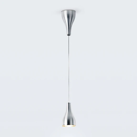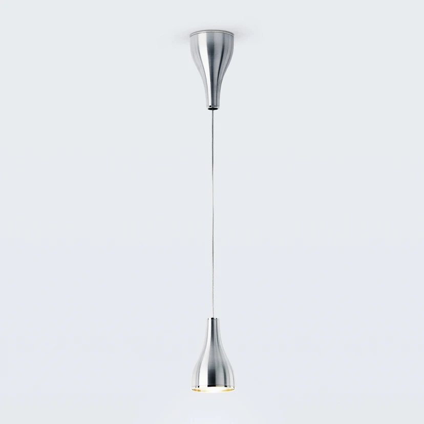 Als klassische Leuchte, optimiert durch Funktionalität und Finesse, präsentiert sich die von Yaacov Kaufman entworfene Hängeleuchte One Eighty Adjustable. Lampenschirm und Baldachin bilden dank einheitlicher Gestaltung und Maße eine Symmetrie, so dass der Lampenschirm sich an der Decke zu spiegeln scheint. Beide Komponenten bestehen aus Aluminium und sind optisch aufeinander abgestimmt.