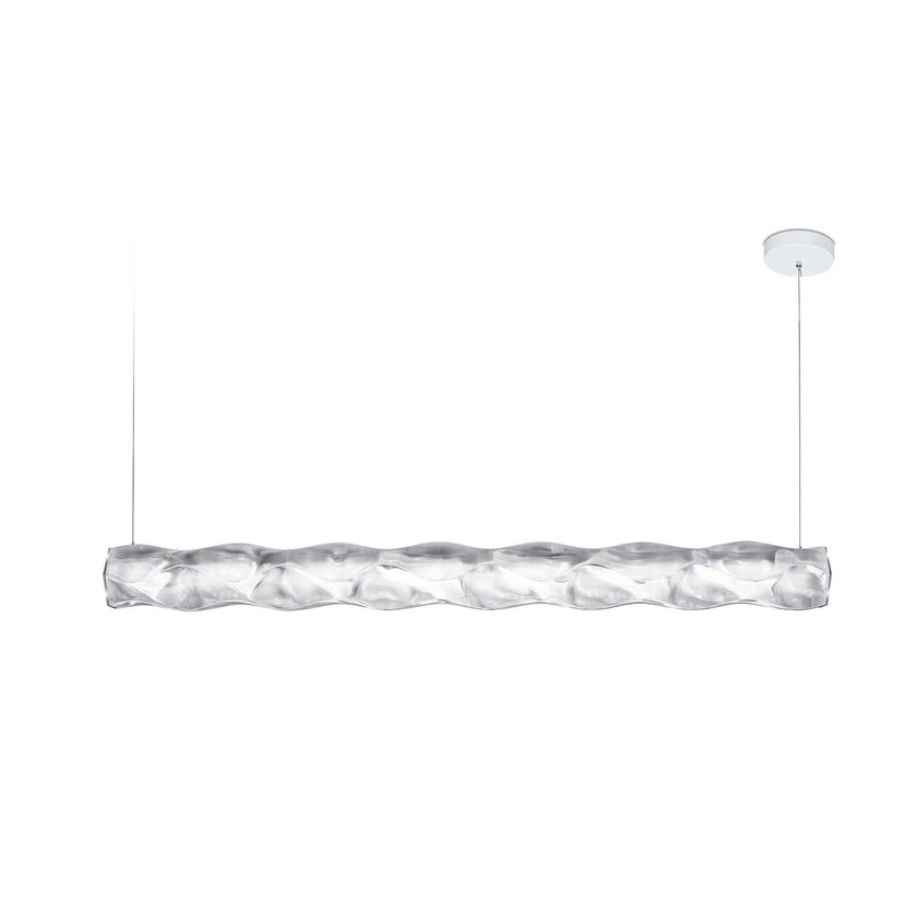 Die Hängeleuchte Hugo ist ein Teil eines größeren, technisch-dekorativen Beleuchtungssystems von Slamp, das mit dem Red Dot Product Design Award ausgezeichnet wurde, und entspricht vollkommen den geforderten Eigenschaften für die Beleuchtung von Büroräumen. Die Leuchte mit zwei Aufhängepunkten und einem Koaxialkabel erzielt eine hohe Lichtausbeute bei geringem Verbrauch. Das Licht wird von dem einzigartigen Material Lentiflex® von Slamp fluidifiziert und weich gezeichnet. Die beleuchtungstechnische Qualität dieser Leuchte ist nicht nur in beruflichen Bereichen ideal, sondern auch in den häuslichen Bereichen wie Küche oder Esszimmer, wo die Schatten ausgeglichen werden und eine perfekte Sicht durch eine sehr gleichmäßige Beleuchtung geschaffen wird. Leuchten von Slamp zeichnen sich nicht nur durch außergewöhnliches Design aus, sondern auch durch die Verwendung ganz besonderer Materialien. Für die Hängeleuchte Hugo wurde der Kunststoff Lentiflex® verwendet, der dafür sorgt, dass das Licht aus dem Inneren der Leuchte auf einzigartige Weise nach außen in den Raum dringt.
