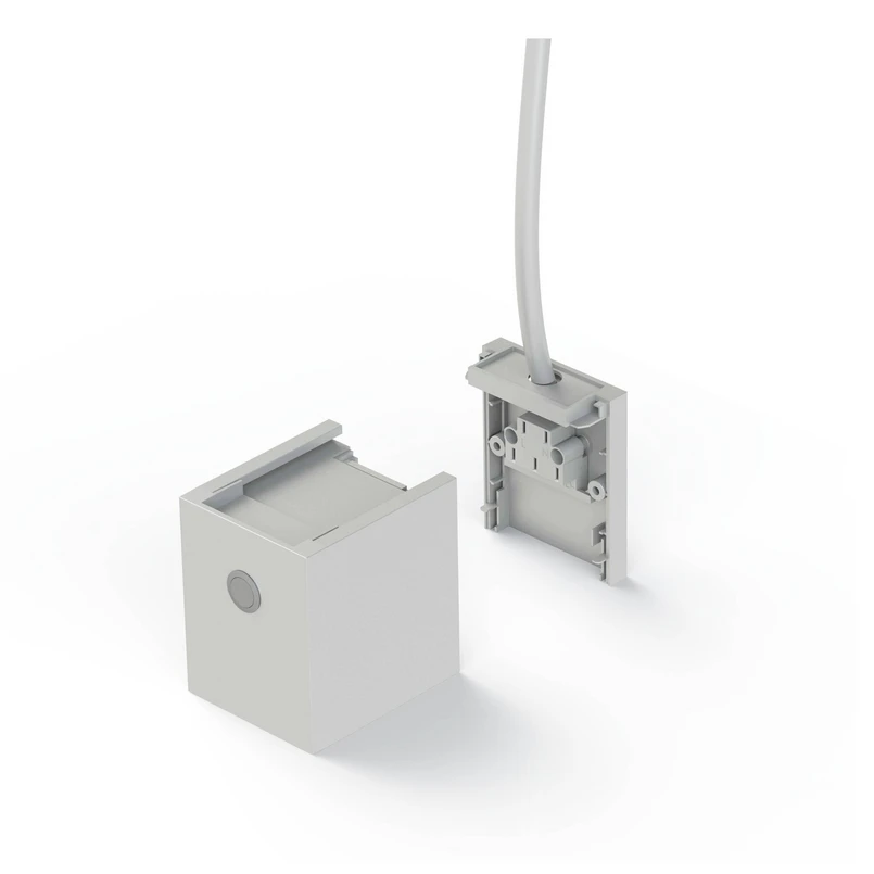 Pushdim-Schalter, der an einem Ende der Armatur eingeklickt wird, einschließlich vorverdrahtetem Endstück für 230V am anderen Ende, das mit 2 Schrauben gesichert wird. Vermeiden Sie die Verwendung der Pushdim-Funktion mit zu vielen Teilen im Click-System, da diese beim Dimmen „aus dem Takt“ geraten können. Halten Sie den Schalter 20 Sekunden lang gedrückt, um zu synchronisieren. Maximal 10 Armaturen pro Pushdim empfohlen.