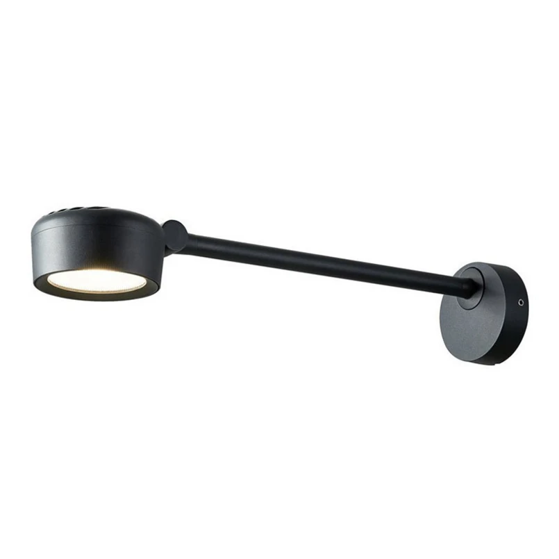 Eskina D ist für die Montage an der Wand vorgesehen. Ihre schlanke, schlichte Form und Verstellbarkeit ermöglicht die Verwendung in zahlreichen Umgebungen. Die LED-Außenwandleuchte setzt beispielsweise am Eingang eines Restaurants Schilder und Anzeigetafeln gekonnt in Szene. Mit dem runden Leuchtenkopf, der dreh- und schwenkbar mittels Ausleger befestigt ist, kann der Lichtaustritt auf den gewünschten Bereich gerichtet werden. Je nach Bedarf emittiert Eskina D warmweißes oder universalweißes Licht; dies lässt sich über einen Schalter unter der Abdeckung des Kopf-Gehäuses einstellen.
