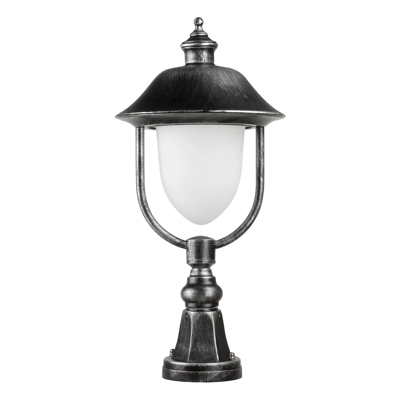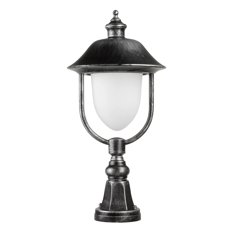 Das antike Design der Sockelleuchte 1156 spiegelt sich nicht nur in der Form-, sondern auch in der Farbgebung wider. Das Gehäuse aus Aluminium-Druckguss ist mit einem schwarz-metallischen Finish veredelt und wird vom abstrahlenden Licht des opalen Leuchtenglases eindrucksvoll in Szene gesetzt. Die ästhetische Form des Glases ist ein weiterer Pluspunkt der Sockelleuchte 1156, die auf jedem Grundstück für eine adäquate Umgebungsausleuchtung sorgt.