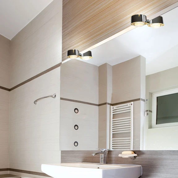 Die kleine Spiegelklemmleuchte Puk Fix begeistert mit ihrem zeitlosen Design und ihrer praktischen Anwendungsweise. Diese schöne Leuchte lässt sich im Handumdrehen an einem Spiegel anbringen und beleuchtet das Zimmer in einem angenehmen Licht, ohne zu blenden. Auf der unteren Seite wird eine Linse eingesetzt, die das Licht gut in die Hauptleuchtrichtung bündelt. Oben wird ein Glas verwendet, das das Licht sanft und gleichmäßig verteilt.