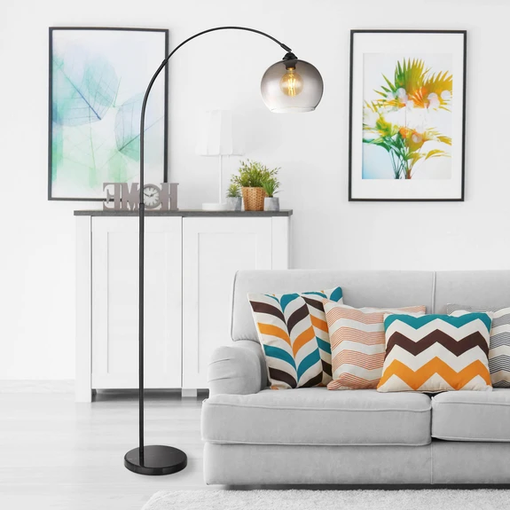 Das matt scharz lackierte Metall, der edle schwarze Marmor und das rauchfarbene Glas vereinen sich bei der Stehleuchte Newcastle zu einem beeindruckenden Design. Mit dem praktischen Fußtrittschalter im Kabel kann die Beleuchtung bequem gesteuert werden Die Stehleuchte Newcastle ist höhenverstellbar von 141 cm bis 196 cm.