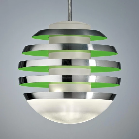Diese Hängeleuchte, entworfen von Professor Oliver Niewiadomski, begeistert mit ihrem aus mehreren Lagen bestehenden Leuchtkörper, bei dem besonders die gezielt gesetzten Farbakzente in den Blick fallen. Das kreativ gestaltete Design drückt der harmonischen Kugelform den Stempel der Besonderheit auf.