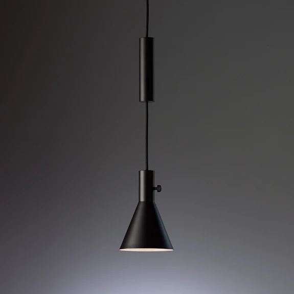 Dieses in Deutschland gefertigte Qualitätsprodukt von TECNOLUMEN ist relativ schlicht und in der Optik auf das Wesentliche reduziert - ganz so, wie man es oft von einem Designgegenstand erwartet. Die Deckenhalterung, das mittige Element und der obere Teil des Schirms sind alle gleich schmal. Dass der Schirm dann etwas breiter wird, wirkt auf den Betrachter absolut stimmig. Nichtsdestotrotz handelt es sich um eine eher schmale Hängeleuchte, die ihren Lichtschein nach unten abstrahlt, so dass beispielsweise Tisch- und Tresenflächen gut ausgeleuchtet werden können.