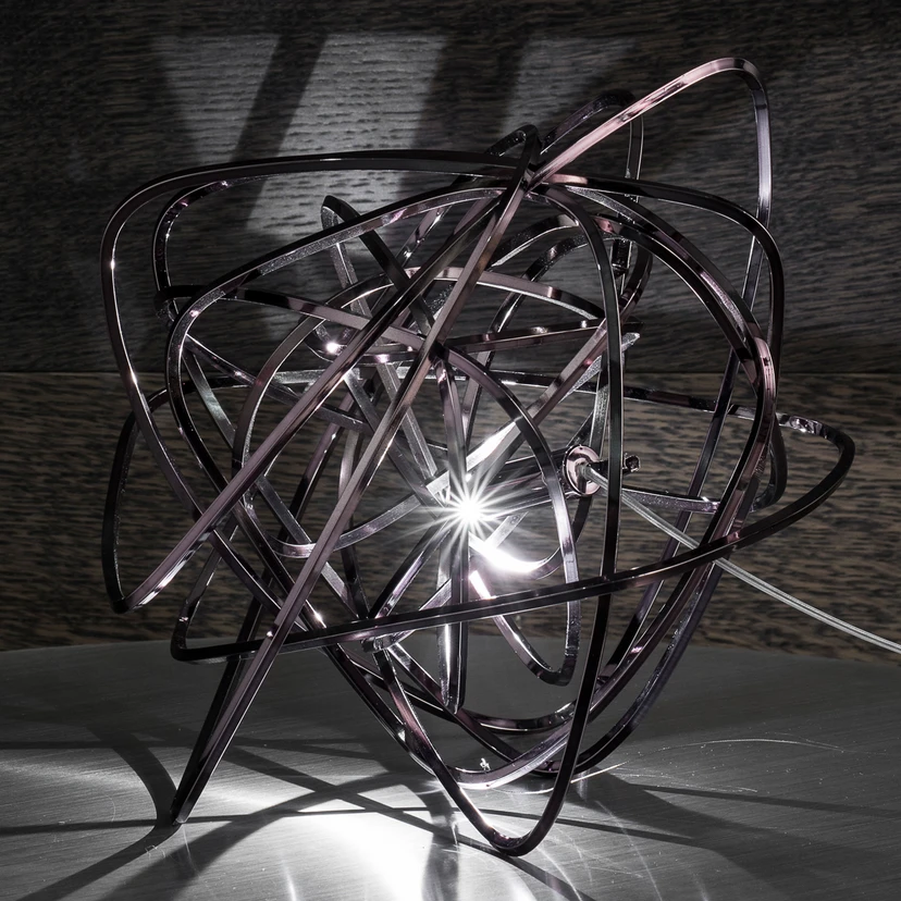 Diese außergewöhnliche Tischleuchte ist aus dem Federhalter der italienischen Designerin Simone Micheli entsprungen und begeistert durch unkonventionelles und puristisches Design. Ihr gesamter Körper besteht aus ineinander verschlungenem Draht, der in eingeschaltetem Zustand wunderbar beginnt zu funkeln. Dadurch, dass das Licht sich seinen Weg auf unterschiedlichen Wegen durch das Drahtgemenge bahnt, entsteht in der näheren Umgebung ein tolles Licht-und-Schatten-Spiel.