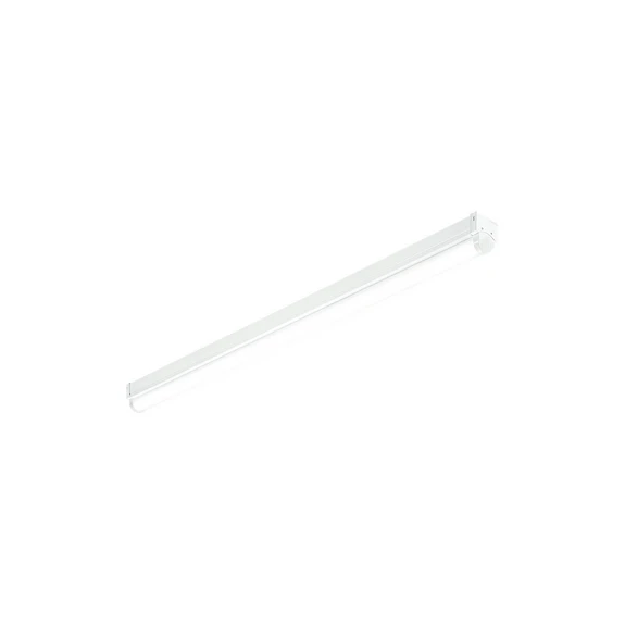 Das weiße Gehäuse ist aus beschichtetem Stahl geformt. Die Endkappen bestehen aus einspritzgegossenem Polycarbonat. Der röhrenförmige Diffusor aus texturiertem, opalem Acryl sorgt für eine gleichmäßige Lichtausstrahlung in einem sehr weiten Winkel.