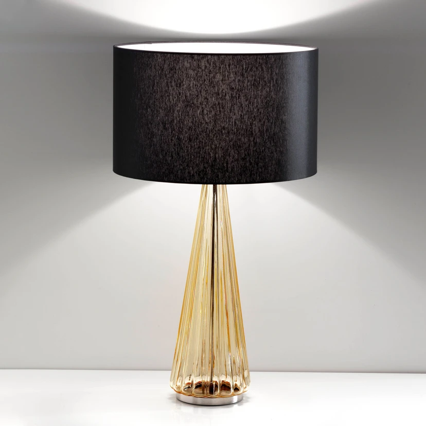 Die Tischleuchte Costa wird in Venetien hergestellt und verbindet eine klassische Leuchtenform mit einem zeitgemäßen Design. Mit ihrem schwarzen Textilschirm und dem Glasfuß strahlt sie eine zurückhaltende Eleganz aus, die jedem Raum eine stilvolle Note verleiht. Der schwarze Leuchtenschirm aus Textil sorgt für eine Lichtverteilung nach oben und unten, sodass Costa Rica sich hervorragend zur Ausleuchtung des Nachttisches eignet. Das geriffelte Glas des Leuchtenfußes ist mundgeblasen und in verschiedenen Farben erhältlich, was die Kombination mit unterschiedlichen Farbkonzepten ermöglicht.