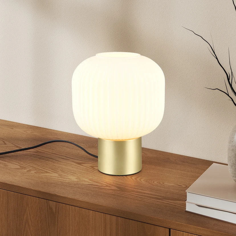 Tischleuchte Diva, messingfarben, weiß, Metall, Glas, E27
