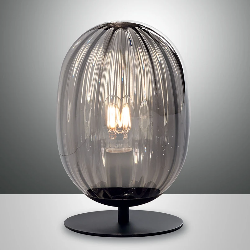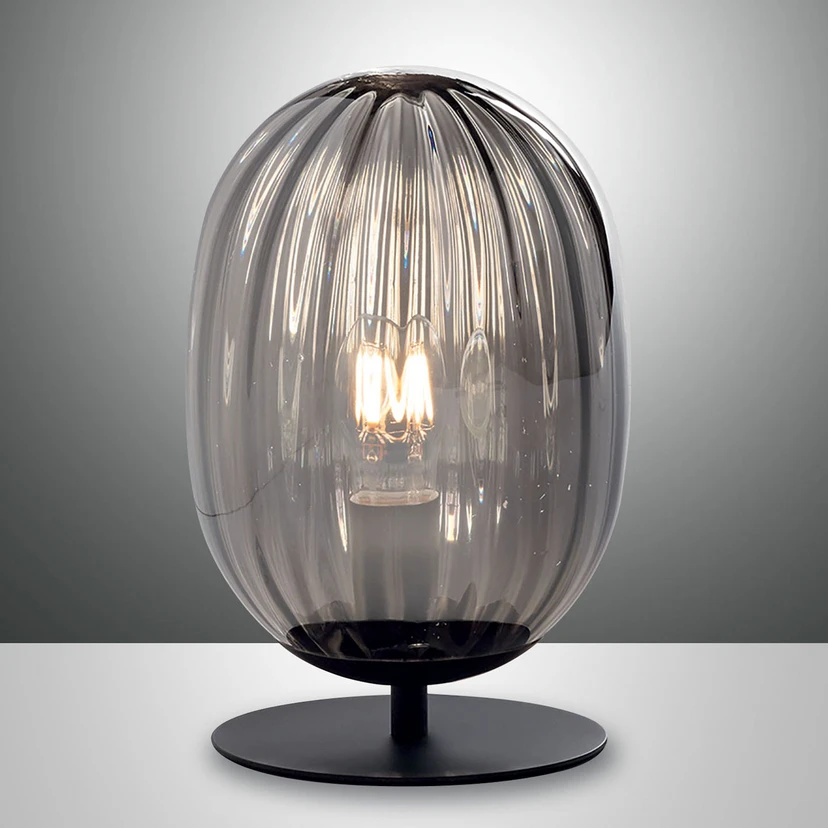 Tischleuchte Infinity - Schirm aus Rauchglas mit dekorativem Wellenmuster