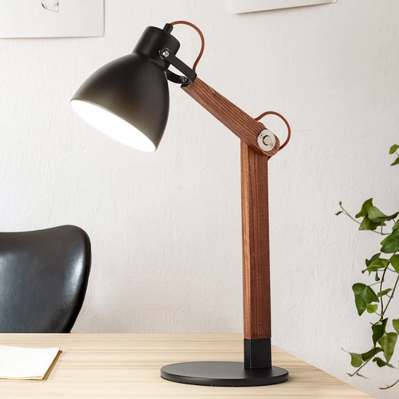 Tischleuchte Sveva aus Holz, schwarz/walnuss