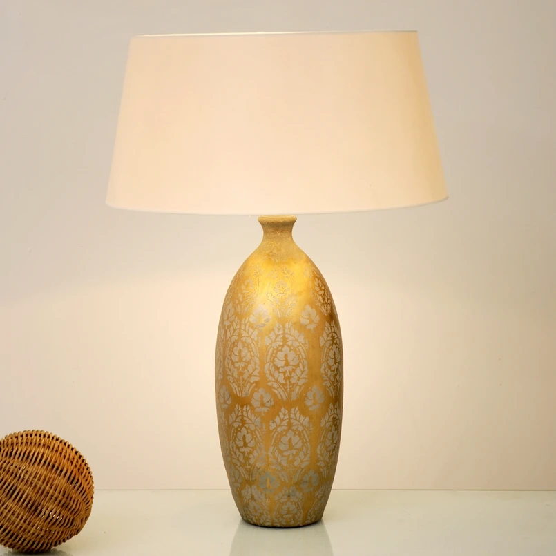 Tischleuchte Vaso Barocco aus Keramik und Textil