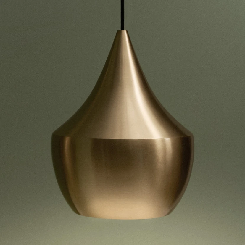 Beat Fat ist eine LED-Hängeleuchte des Designers Tom Dixon, die aus massivem Messingblech gefertigt wurde. Vorbild zum Design dieser schön geformten Hängeleuchte, die sich durch einen expressiven Minimalismus auszeichnet, waren die traditionellen Wasserbehälter, in denen man in Indien sein Wasser vom Brunnen nach Hause trägt.