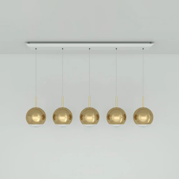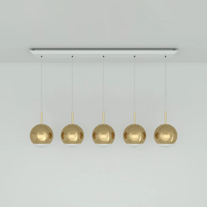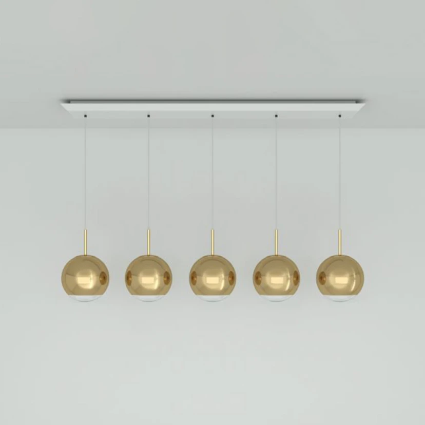 Fünfflammige LED-Pendellampe Mirror Ball 25 cm Linear mit Kugelschírmen in Metallic-Optik
