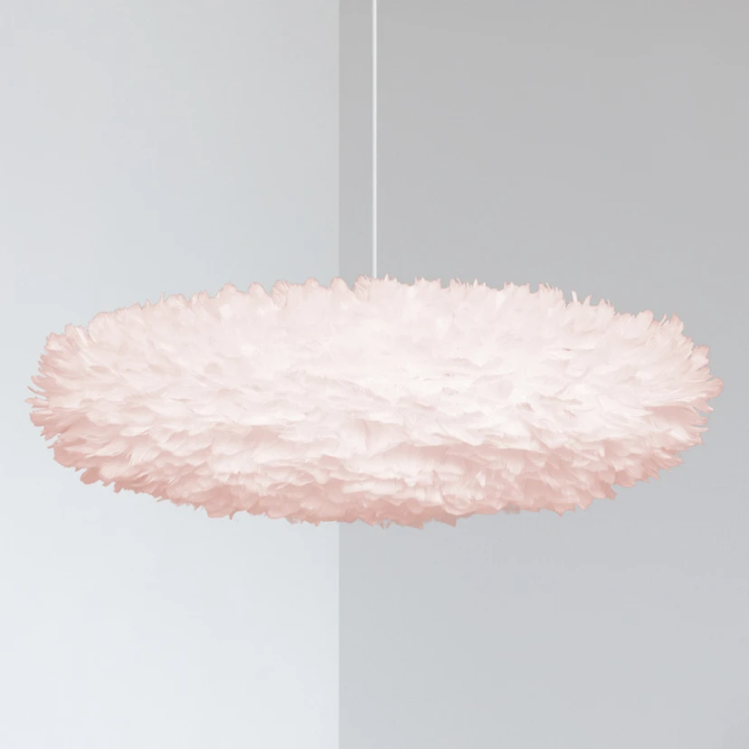 Die aus echten Gänsefedern bestehende Pendelleuchte Eos Esther erhielt ihren Namen aus der griechischen Mythologie. Eos ist die Göttin der Morgendämmerung und so erzeugte der dänische Designer Søren Ravn Christensen bei seinem Entwurf die Verbindung zu den Wolken, die am Himmel schweben - genauso wirkt die Leuchte Eos Esther auf den Betrachter. Eine Wolke, die Leichtigkeit, Reinheit und Zuversicht ausstrahlt. Eos Esther sorgt mit einem mitschwingenden Gefühl der Geborgenheit dafür, dass man sich wohl fühlt und der Raum freundlich erhellt wird. Ihre schlanke und elegante Form prädestiniert sie für einen Esszimmertisch, aber auch im Schlafzimmer sorgt sie mit ihrer Ausstrahlung für Wohlfühlmomente. Der Lichtstrahl tritt rundum in blendfreiem Schein durch die Federn hindurch und sorgt somit für ein angenehmes und stimmungsvolles Ambiente.