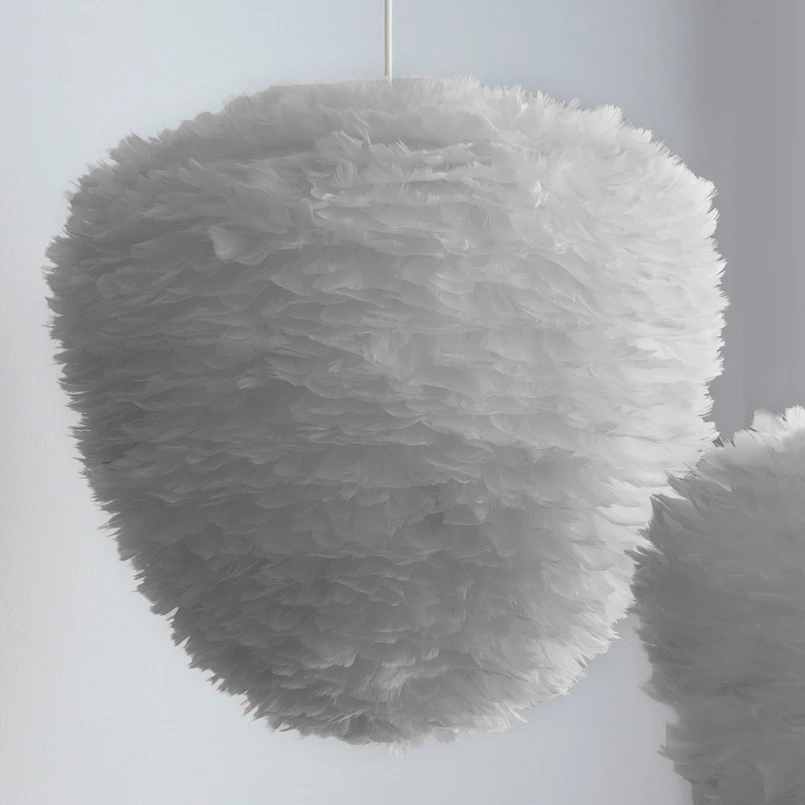 Flauschig-leichte Hängeleuchte Eos Evia mit Gänsefederschirm