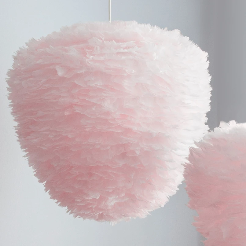 Flauschig-leichte Hängeleuchte Eos Evia mit Gänsefederschirm
