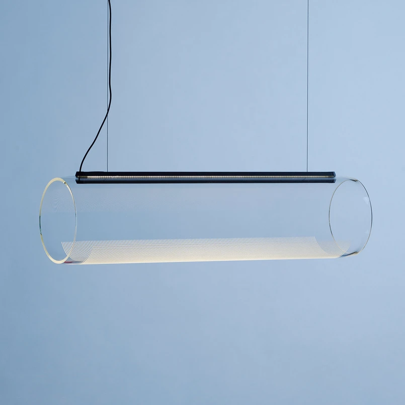 Neben den technischen Highlights kann die Leuchte auch mit ihren Materialien punkten. Beim Glas der Röhre handelt es sich um Borosilikatglas, das in Handbarbeit vom international führenden Glashersteller Schott AG hergestellt wird. Der sorgfältige Herstellungsprozess in Handarbeit wird vor allem durch die kleinen Schönheitsfehler im Glas deutlich, wie z.B. kleine Luftblasen oder Einschlüsse, die jede Leuchte zu einem absoluten Unikat machen. Über einen Sensor an der Oberseite des Leuchtenkörpers lässt sich die Hängeleuchte ein- und ausschalten sowie dimmen.