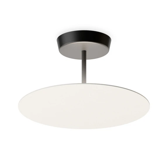 Das Leuchtmittel sitzt auf der flachen, horizontalen Scheibe und scheint in Richtung Decke. Beim Einschalten wird so ein sehr angenehmes, indirektes Lichtbild erzeugt. Die Helligkeit der Lampe kann bei Bedarf mittels 1-10V, Push- oder DALI-Dimmer (nicht enthalten) reguliert werden.
