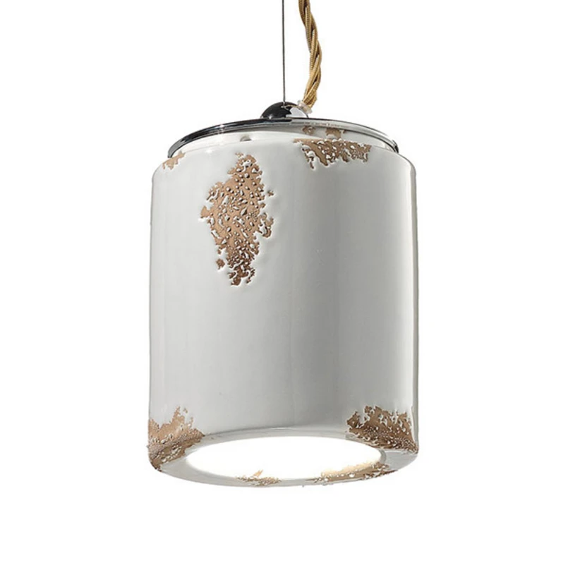 Design, das sich auf das Wesentliche und auf das Einfache fokussiert, kombiniert mit dezenten Formen und einem Mix aus glänzenden und aus wie abgenutzt aussehenden Farbflächen- so lässt sich die Pendelleuchte C984 beschreiben. Sie ist aus Keramik gefertigt und fügt sich ideal in urbane Einrichtungen und in ein Vintage-Ambiente ein.