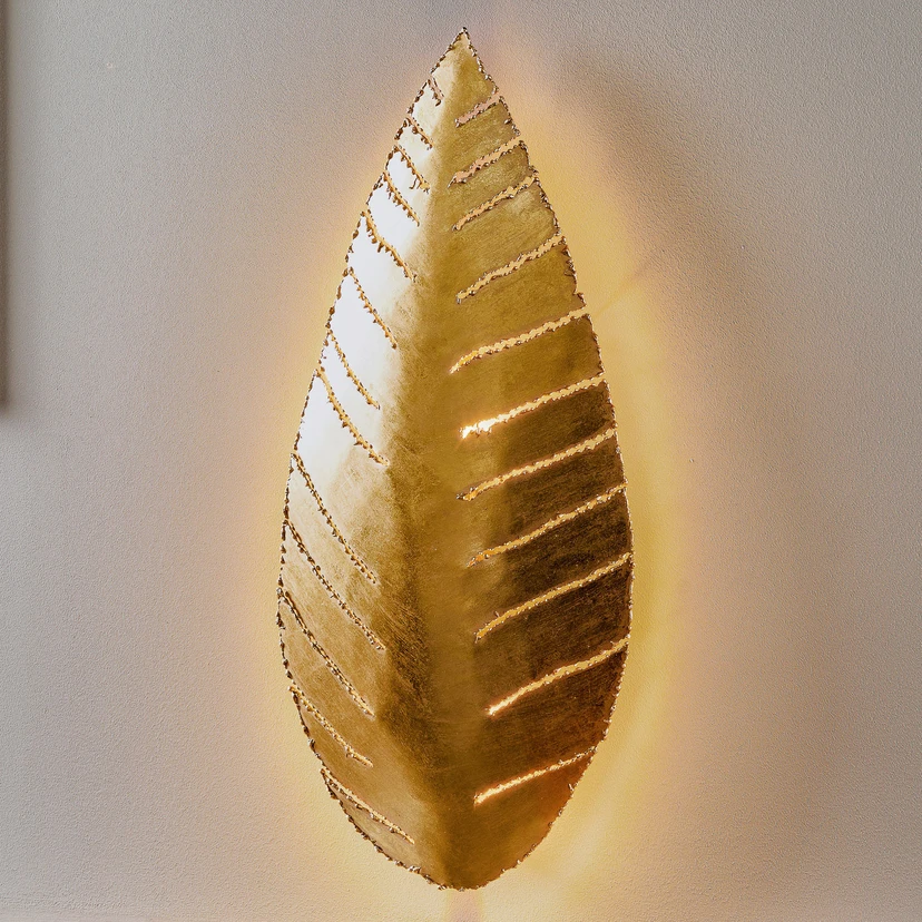 Alle Blicke auf sich zieht garantiert diese Wandleuchte: in Form eines Blattes passt sie sich mühelos und dezent jeder Wand an. Die goldene Optik verleiht ihr das gewisse Etwas und sorgt für traumhafte Beleuchtung. Auch ausgeschaltet ist die Wandleuchte Pietro ein dekorativer Blickfang.