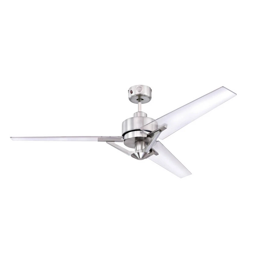 Seine Optik macht den Deckenventilator Julien zu einem regelrechten Designelement, auch wenn er sich gerade nicht im Betrieb befindet. Sein Gehäuse ist mit einem Finish in gebürstetem Nickel verziert und topmodern gestaltet. In diesen Look fügen sich die drei transparenten Flügel mühelos ein, sie werden von unten durch filigrane Streben zusätzlich gestützt. Eine passende Fernbedienung ist im Lieferumfang bereits enthalten. Die beiliegende Zwischenstange muss zur Montage verwendet werden. Passende Verlängerungsstangen sind als Zubehör separat erhältlich.