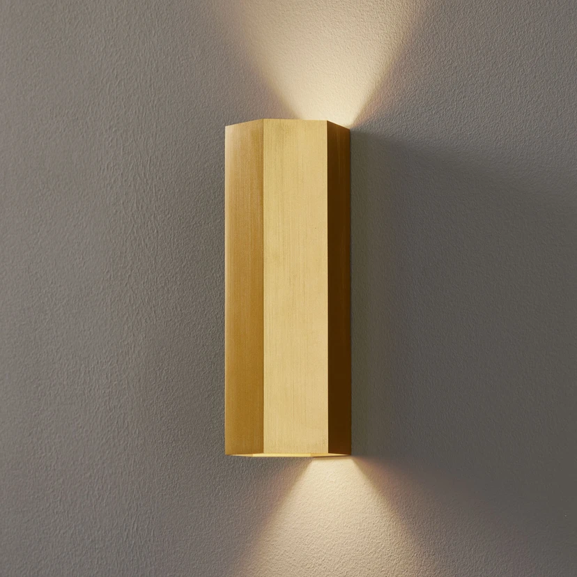 Die Wandleuchte Hexo mini 2.0 glänzt nicht nur durch die Farbgestaltung in Gold, sondern sticht auch durch ihre Sechseckform hervor, der sie auch ihren Namen verdankt. In der schmalen Leuchte sind zwei GU10-Fassungen verbaut, die alle Leuchtmittel mit GU10-Sockel aufnehmen können. Zu empfehlen sind hier energiesparende LED-Leuchtmittel. Hexo mini strahlt ihr Licht direkt nach unten sowie indirekt nach oben und bewirkt so nicht nur eine adäquate Ausleuchtung der Umgebung, sondern gleichzeitig auch noch eine behagliche Atmosphäre im Raum.